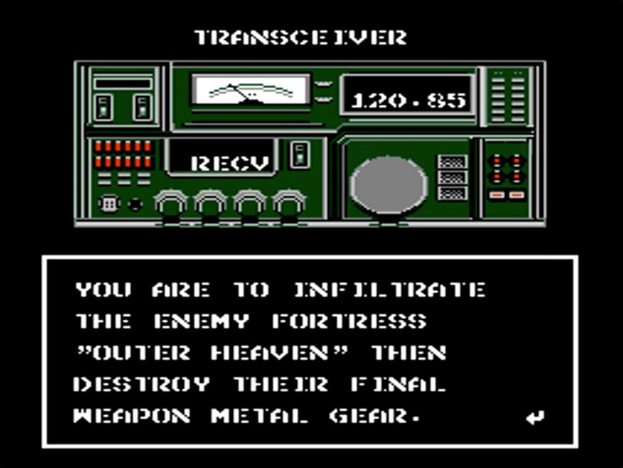 If you have never played it, Metal Gear on NES is a top down action adventure that tries to make stealth the point, not just a gimmick. The game is a port of the MSX2 version.