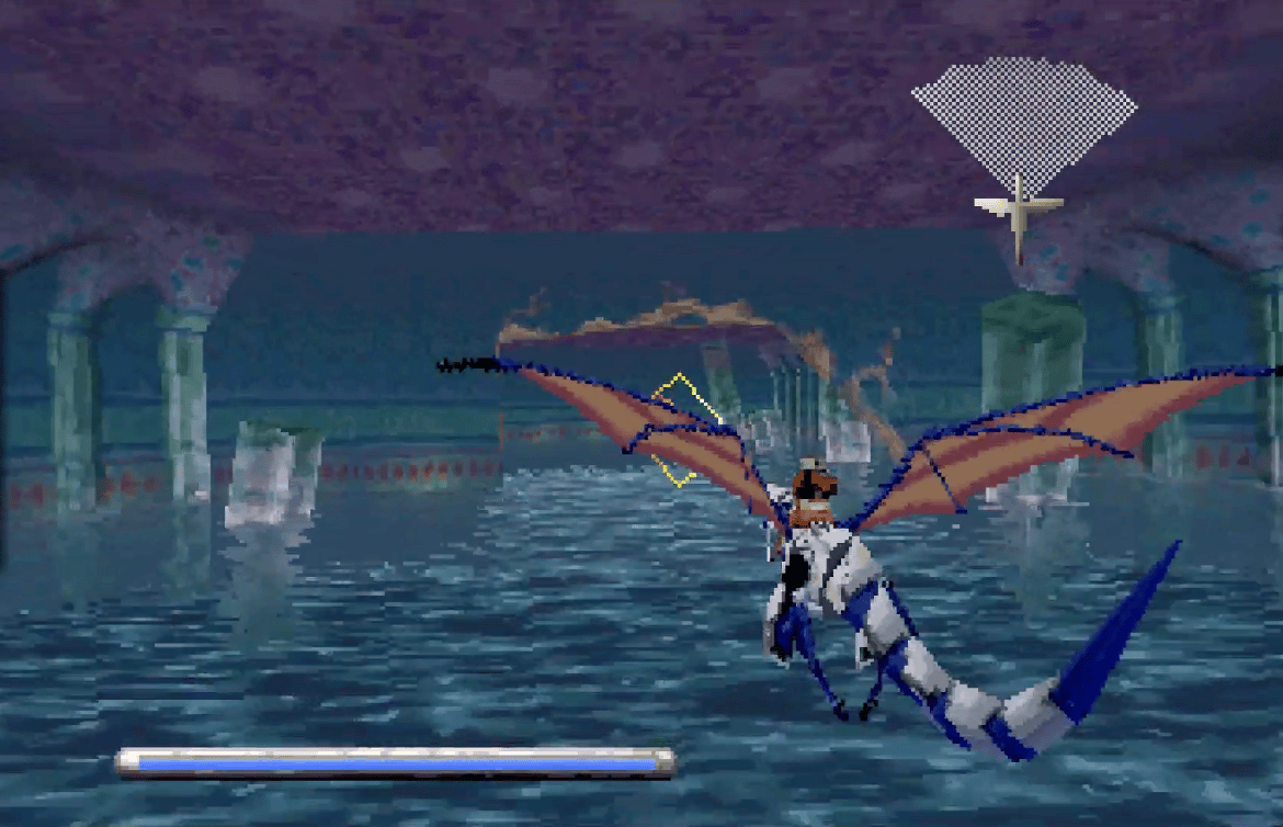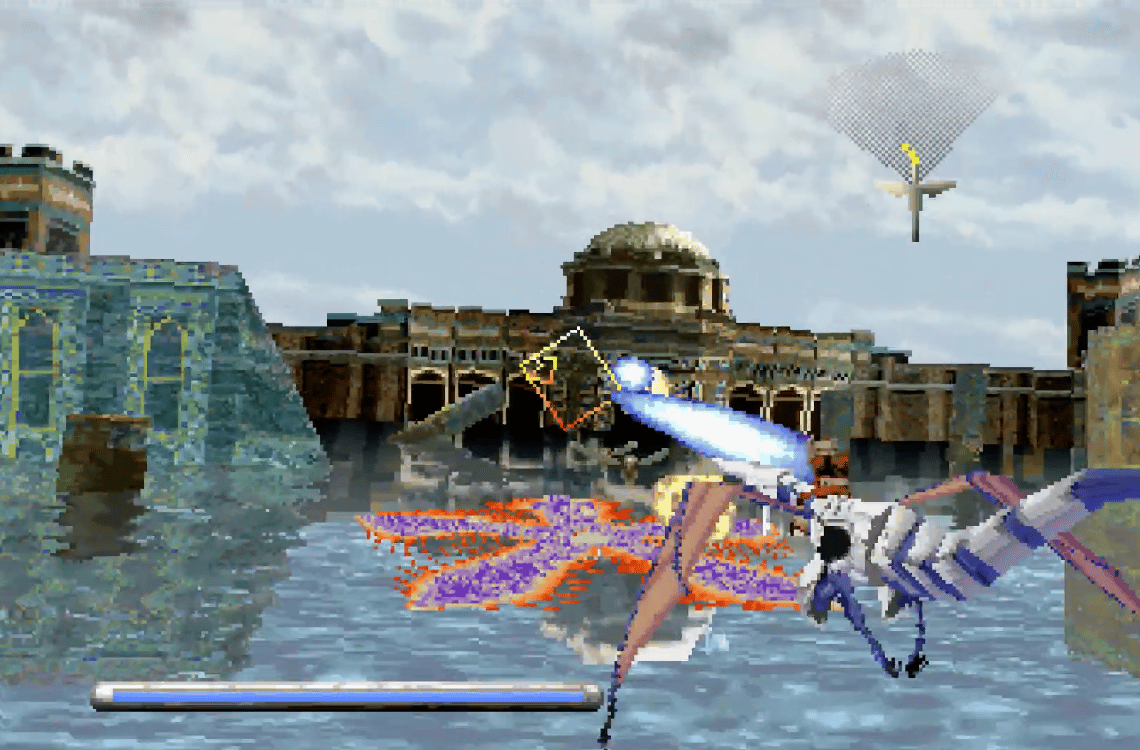 Panzer Dragoon is a rail shooter, which means the game moves for you. Your dragon follows a set path through seven levels, and your job is to rotate the camera, aim a targeting reticle, and shoot everything that comes at you from any direction. That is the whole game. It sounds simple because it is simple, and that simplicity is part of why it still works.