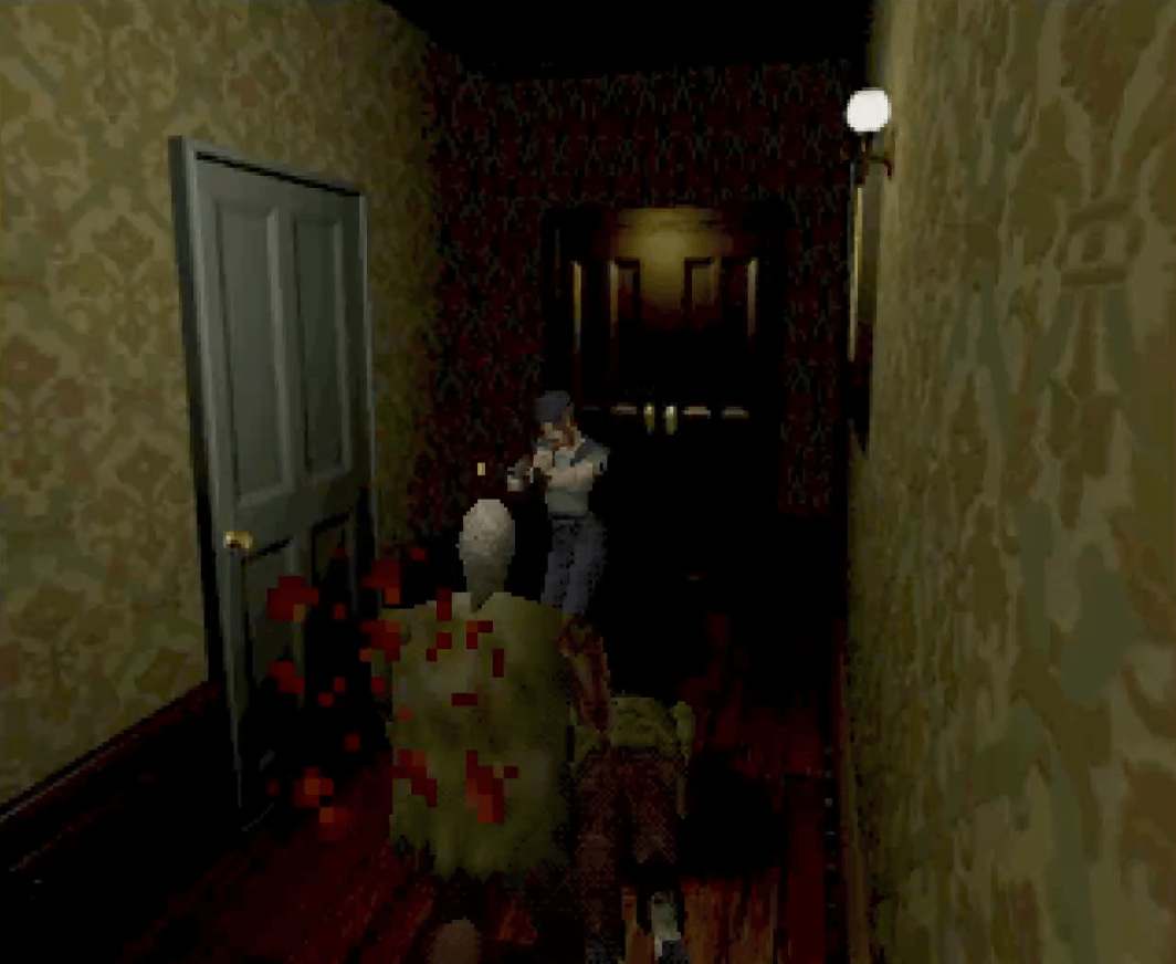 The game constantly forces you to decide whether to fight or flee. Zombies take multiple headshots to drop permanently. This was something I didn’t realize during the first time I played this back in 96. If I saw something move, I shot it.