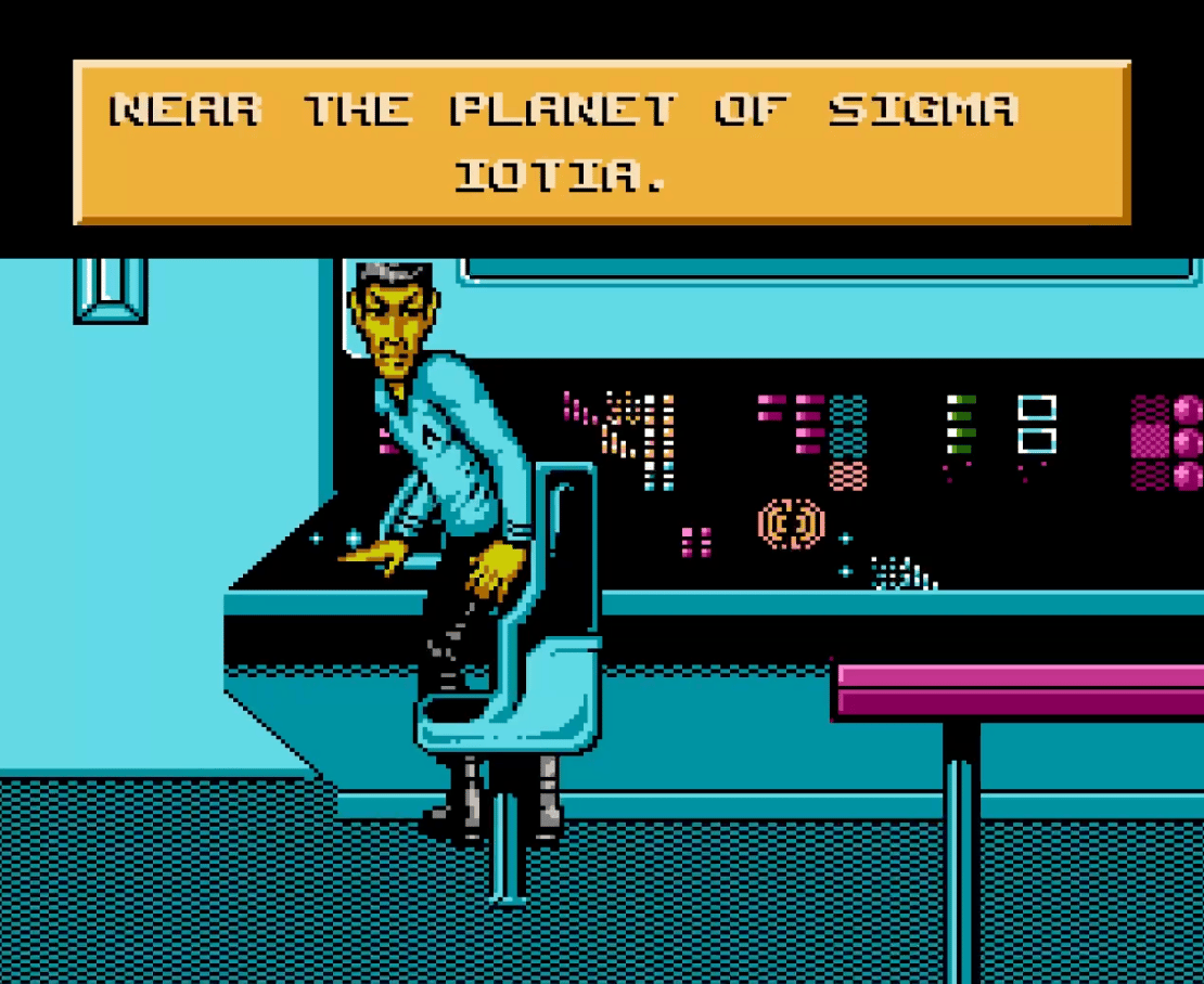 Character portraits during dialogue look accurate for NES standards. The soundtrack adapts music from the original series into chiptune form. References to older episodes appear throughout, with Harry Mudd even making an appearance. The game structures itself like a TV episode, complete with a cold open before the title sequence. It’s pretty cool they pulled this off on the NES.